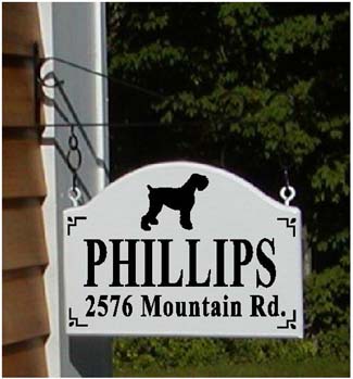 It is constructed on 3/4" thick routed pvc and features a silhouette of the Black Russian, add your name, and/or your address. We will personalize this sign any way you would like. It also comes with a bracket ready to hang. It is lettered on both sides. It will last for years.
