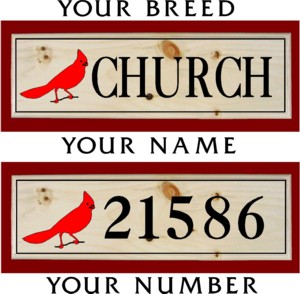 The Cardinal 6" x 18"  Solid Pine Wood House Sign costs $29.95 each. with free shipping.