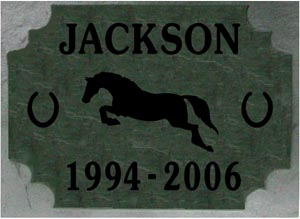 The Vermont slate memorial Features a horse silhouette and optional horse shoes.