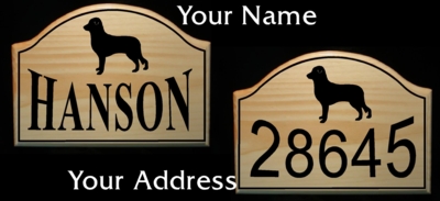 It is constructed on clear coated solid pine and features a silhouette of the Krast Shepherd, add your name, and/or your address. We will personalize this sign any way you would like.