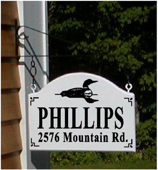 It is constructed on 3/4" thick routed pvc and features a silhouette of the Loon, add your name, and/or your address. We will personalize this sign any way you would like. It also comes with a bracket ready to hang. It is lettered on both sides. It will last for years.