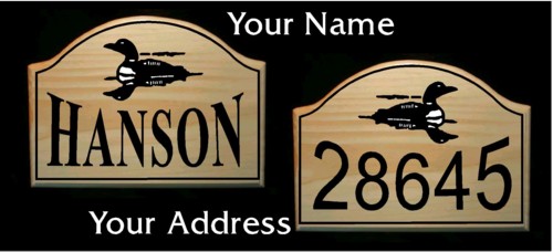 It is constructed on clear coated solid pine and features a silhouette of the Loon, add your name, and/or your address. We will personalize this sign any way you would like.