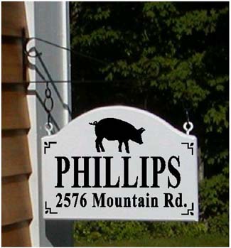 It is constructed on 3/4" thick routed pvc and features a silhouette of the Pig, add your name, and/or your address. We will personalize this sign any way you would like. It also comes with a bracket ready to hang. It is lettered on both sides. It will last for years.