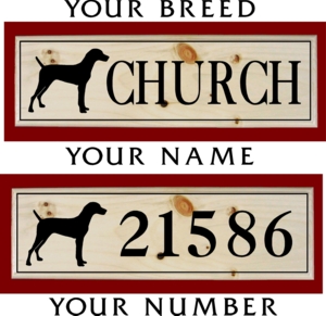 The silhouette of the Vizsla, along with your name or number, lets you welcome someone to your home or camp.