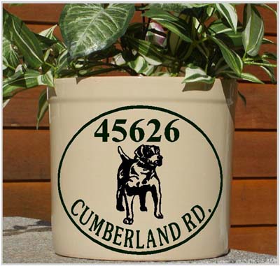 American Bulldog Personalized Crock, oval border American Bulldog Personalized Crock, oval border