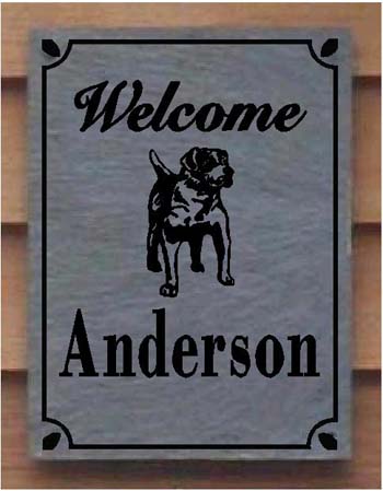 The Slate Welcome signs or House markers measures (9" x 12"), They are deeply sand carved to last for generations. They are made for the outdoors, use them as a house marker,or a warm welcome for guests. Allow approx.1- 2 weeks to ship. formats are, American Bulldog silhouette, and line 1 text.