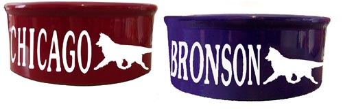 The personalized dog bowl is available in three colors,(Blue, Burgundy, and green). The personalization is deeply etched and features a breed silhouette and one line of text. This personalized dog dish makes a great gift for the "dog who has everything". Allow approx. 3 business days to ship. Formats are: text and Belgian Sheepdog silhouette