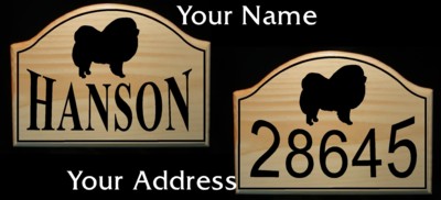 It is constructed on clear coated solid pine and features a silhouette of the Chow Chow, add your name, and/or your address. We will personalize this sign any way you would like.