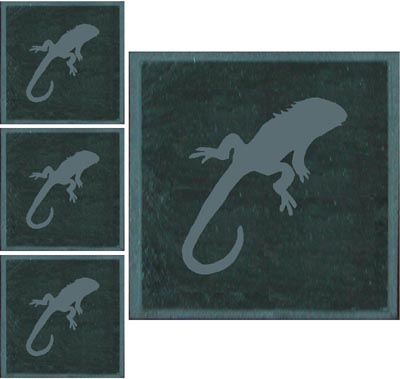 4" Iguana Etched slate coaster set costs  $24.95 per set, with FREE SHIPPING
