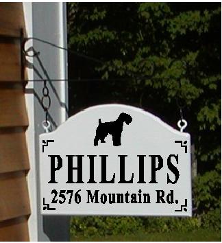 It is constructed on 3/4" thick routed pvc and features a silhouette of the Kerry Blue, add your name, and/or your address. We will personalize this sign any way you would like. It also comes with a bracket ready to hang. It is lettered on both sides. It will last for years.