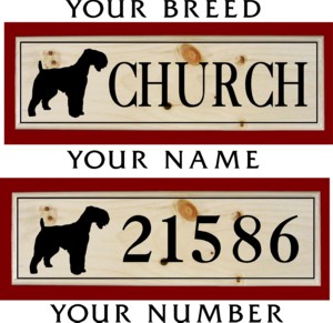 The Kerry Blue 6" x 18"  Solid Pine Wood House Sign costs $29.95 each. with free shipping.
