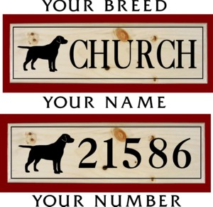 The Labrador Retriever 6" x 18"  Solid Pine Wood House Sign costs $29.95 each. with free shipping.