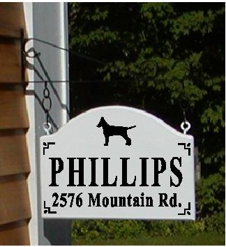The Manchester Terrier 10 x 14 inch Double sided House Sign and Hanging Bracket cost $65.95 each, with Free Shipping.
