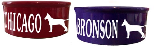 Manchester Terrier Personalized pet feeding dish prices start at $29.95. with FREE SHIPPING