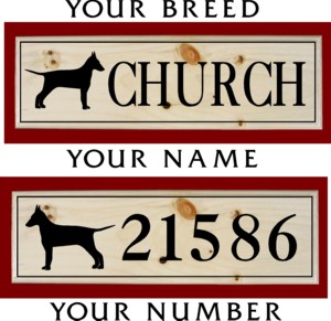 The Manchester Terrier 6" x 18"  Solid Pine Wood House Sign costs $29.95 each. with free shipping.