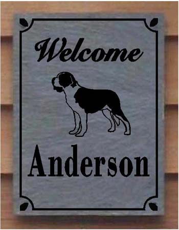Saint Bernard Custom Sand Carved Verticle Slate Welcome Sign or House Marker Saint Bernard Custom Sand Carved Slate Welcome Sign or House Marker