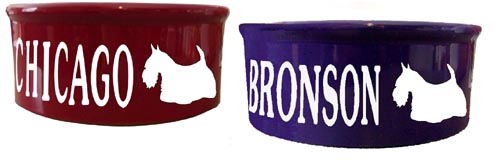 Scottish Terrier Personalized pet feeding dish prices start at $29.95. with FREE SHIPPING