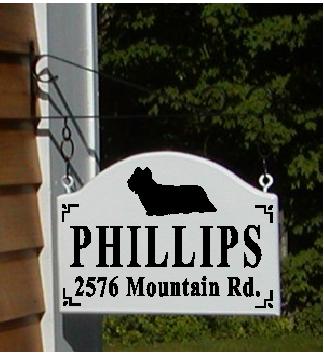 The Skye Terrier 10 x 14 inch Double sided House Sign and Hanging Bracket cost $65.95 each, with Free Shipping.