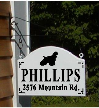 It is constructed on 3/4" thick routed pvc and features a silhouette of the Spaniel Cocker, add your name, and/or your address. We will personalize this sign any way you would like. It also comes with a bracket ready to hang. It is lettered on both sides. It will last for years.