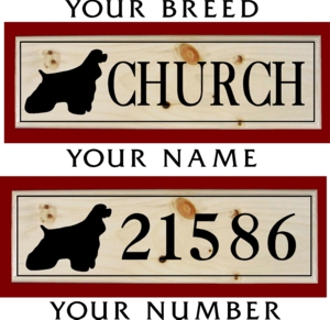 The Spaniel Cocker 6" x 18"  Solid Pine Wood House Sign costs $29.95 each. with free shipping.
