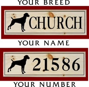 The silhouette of the Weimaraner, along with your name or number, lets you welcome someone to your home or camp.