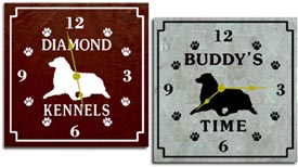 Your clock will be personalized exactly as you type it in, the way you type in the capitalization is they way we will make it. If you have a special request, you can let us know in the comments section of the shopping cart. Note: If you only want one line of text leave the appropriate box blank. Submit your choice of text color on this form, we will paint the silhouette black. thank you. (Letter color choices are black, forest green, or navy) The silhouette will be black except the Westie will be white.